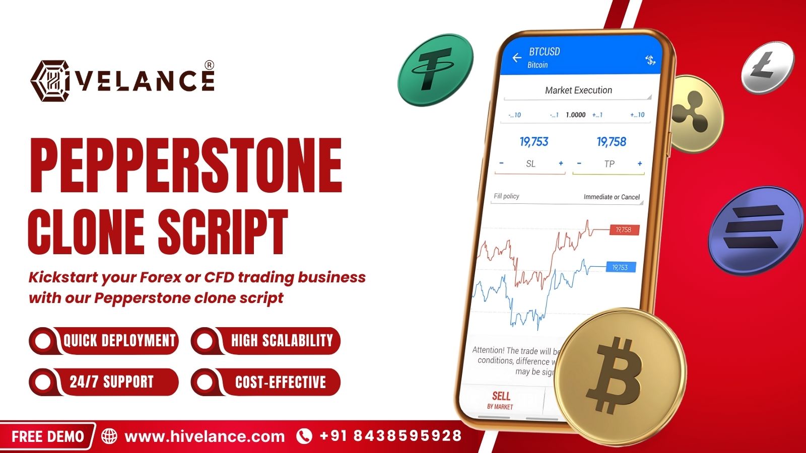 At Hivelance, we deliver a powerful, feature-rich Pepperstone clone script that empowers businesses to enter the Forex or CFD trading space with speed and confidence. Our script offers complete customization, seamless integration of advanced trading tools, real-time charts, and robust security protocols, ensuring a professional-grade experience for your users.
