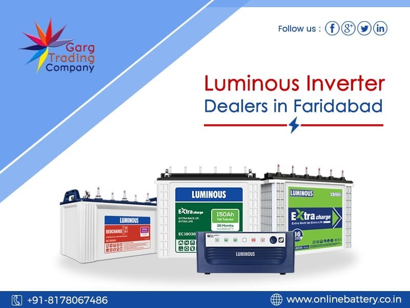 Garg Trading Company is the best Luminous Inverter Battery Shop or Dealer in Greater Faridabad. We provide Luminous tubular inverter batteries online at the best Price. Garg Trading Company is the authorized partner of Luminous. We also provide free installation and free delivery. Contact us for the best luminous 150 ah battery price.