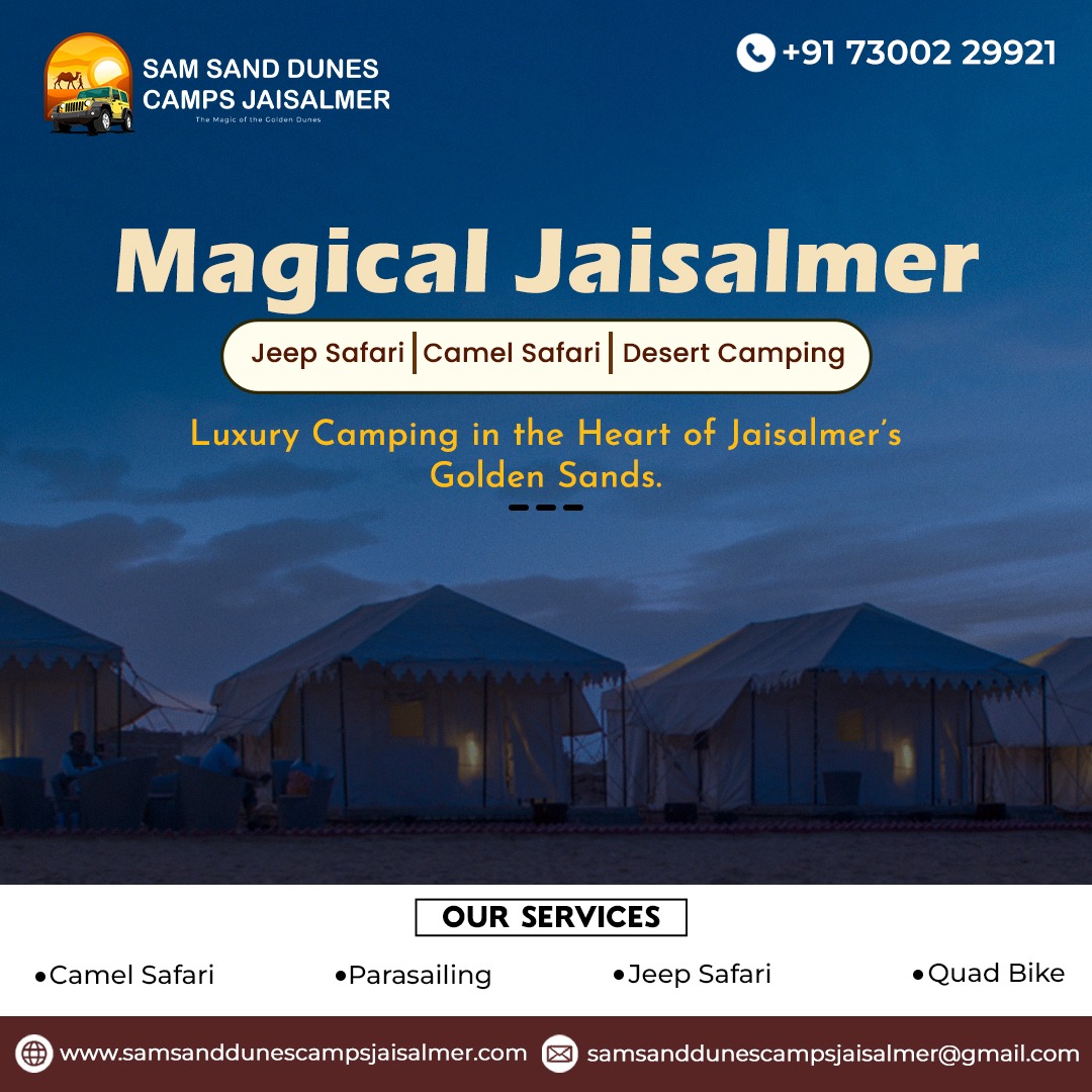 Welcome to Sam Sand Dunes Camps Jaisalmer, where adventure and comfort merge to offer an unforgettable desert experience. Located about 40 kilometers from Jaisalmer, our camps provide an exceptional way to explore the vast Thar Desert. Whether you're seeking the best desert camp in Sam Sand Dunes or an exciting desert safari tour in Jaisalmer, we have something for everyone.