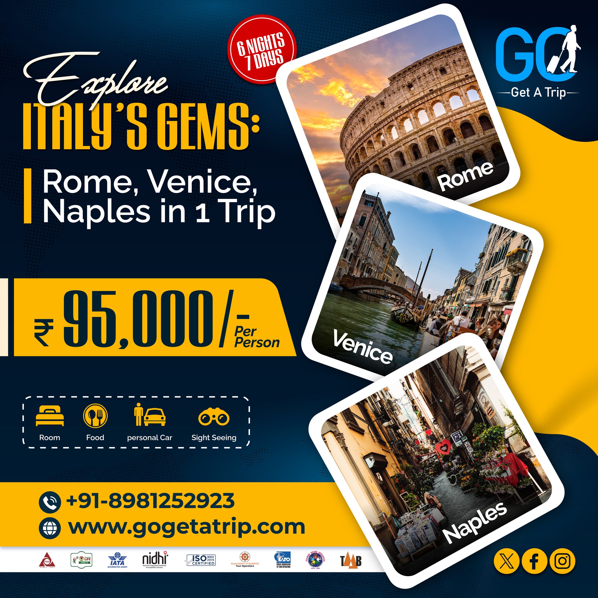 Wondering about how you can set off for an Italy Trip with ease? Dial [18008895657] today! Go Get A Trip offers a chance to explore this beautiful Mediterranean peninsula with our affordable options.