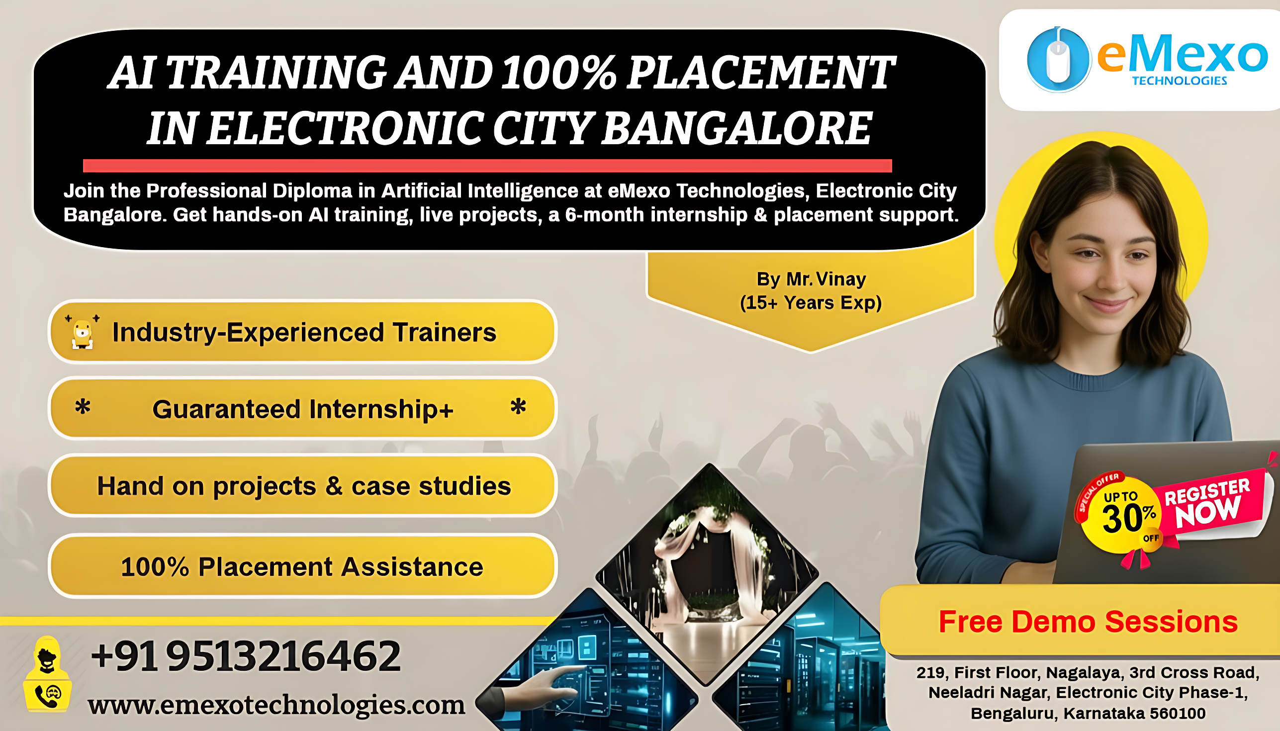 To help you land your dream job, we offer end-to-end placement support — from crafting a strong resume to conducting mock interviews and providing job referrals. Many of our learners have already secured positions as AI Engineers, Data Scientists, and Machine Learning Specialists in leading companies. Each class in our <a href="https://www.emexotechnologies.com/courses/artificial-intelligence-certification-training-course/">AI Course in Electronic City Bangalore</a> includes live case studies and real-time projects designed to reflect current industry needs.
