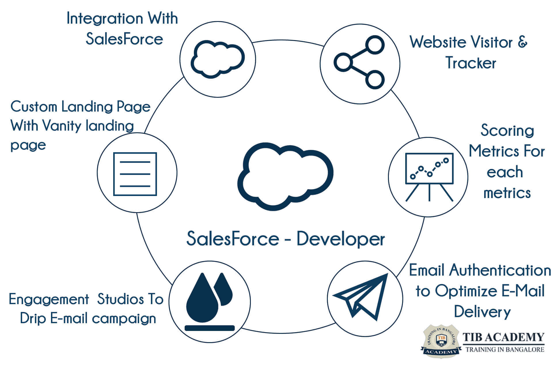 Salesforce is one of the leading technologies it is used to develop cloud-based technology CRM (customer resources management). It is used to develop a business growth throw a strong relationship with the customer and Organization. Moreover, TIB Academy offers Salesforce course in Bangalore, our motivation to develop the student's skill as a professional. At the end, of course, we arrange placement for students in the IT Sector.