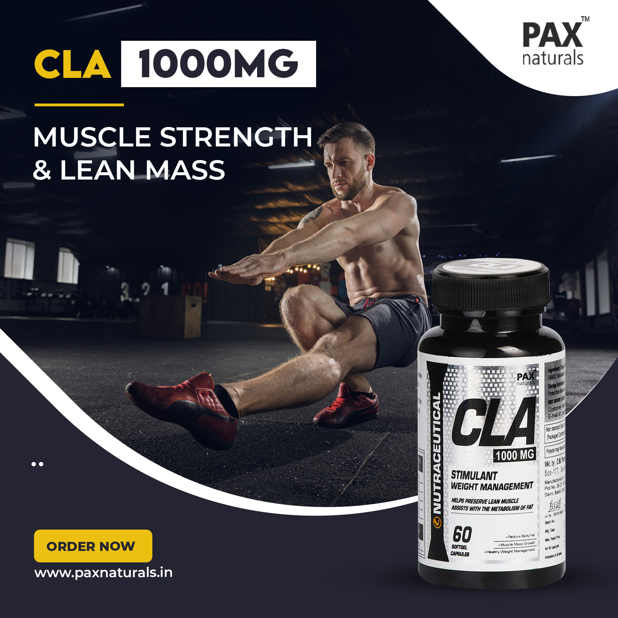 Pax Naturals CLA 1000 MG Supplement, Conjugated Linoleic Acid Helps Fat Burner and Weight Loss - 60 Softgel Capsules ONLY RS: 499.00