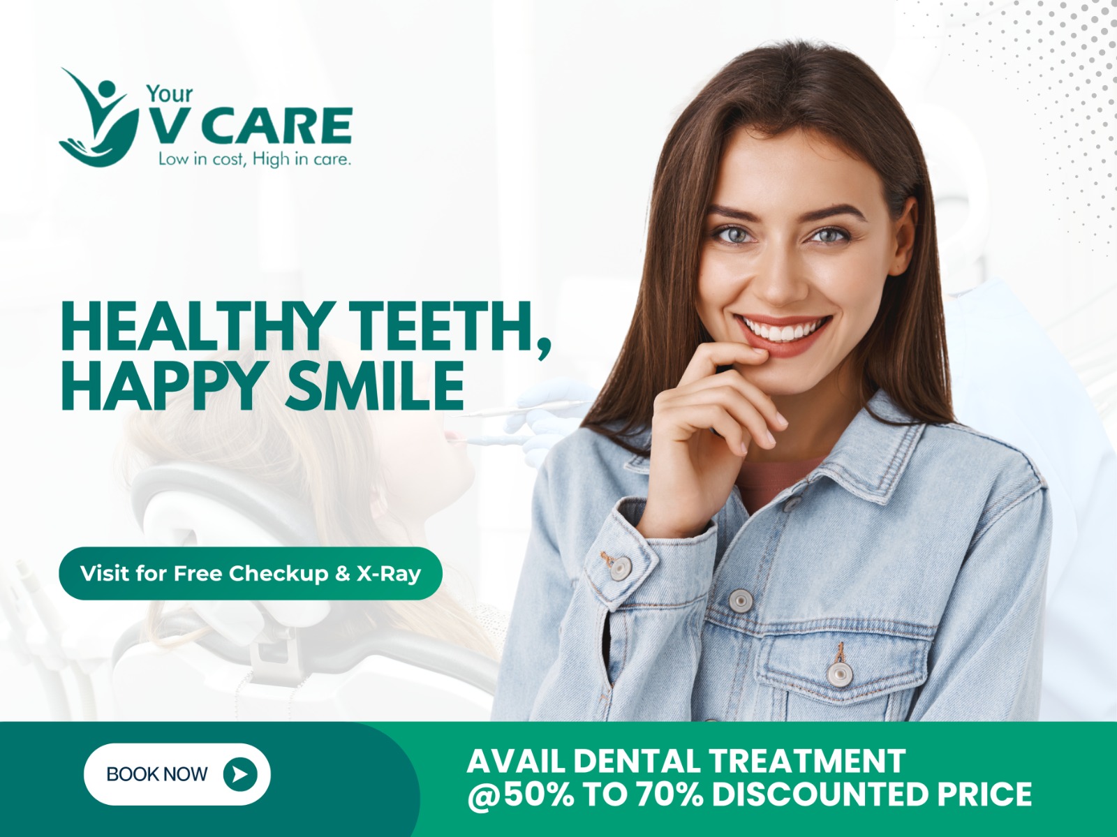 """Your V Care Dental Clinic in Kandivali West offers expert dental services including painless root canals, dental implants, smile designing, teeth whitening, braces, and kids dentistry. Whether you're searching for a trusted dental clinic or the best dentist in Kandivali, Your V Care ensures modern treatment with compassionate care. Enjoy free dental checkups and flexible EMI options to make your oral health affordable and stress-free.""
