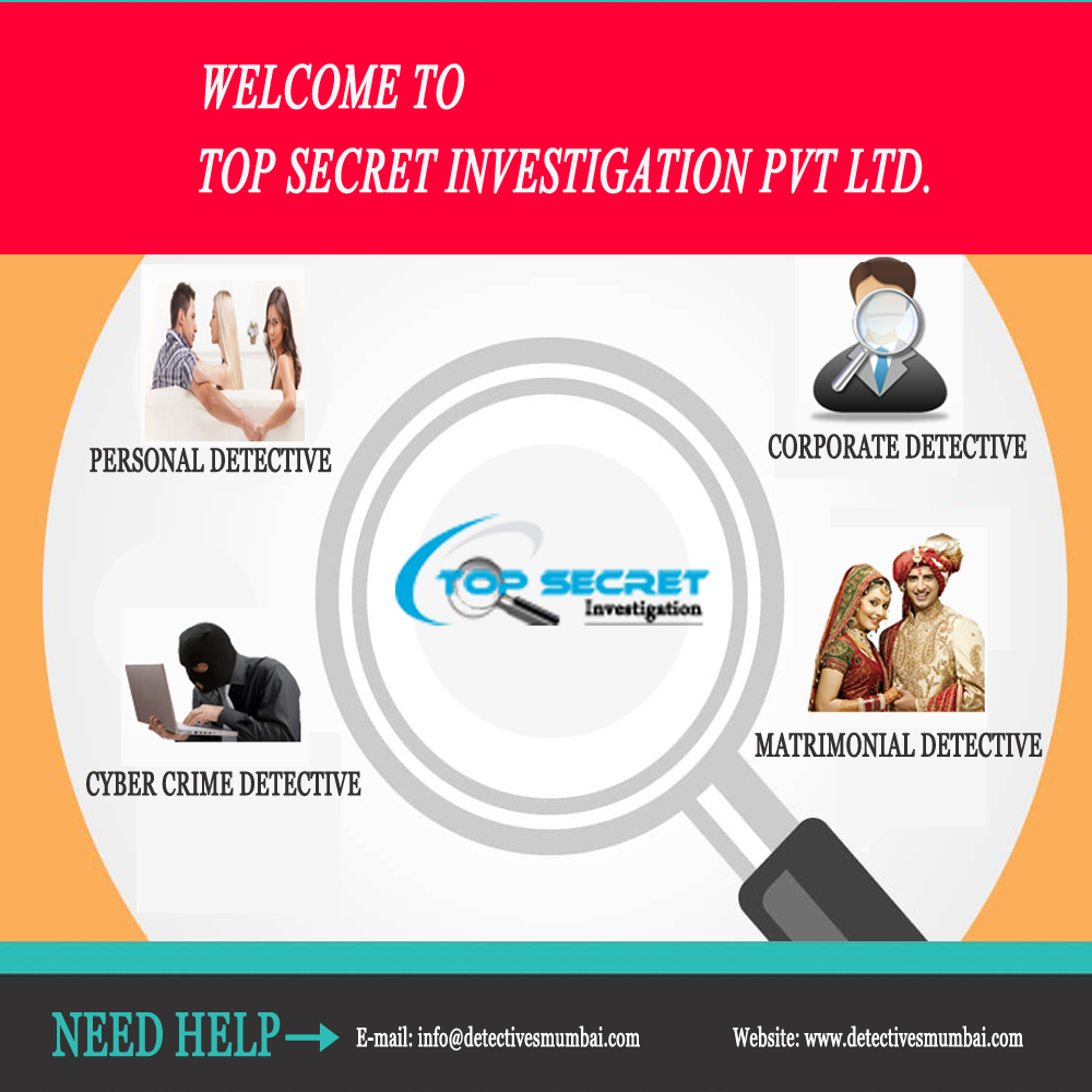 Top Secret Investigation Pvt. Ltd. is known throughout INDIA as a dedicated professional Detective agency in Mumbai, India. Founded on a reputation of quality, service and integrity, Top Secret Investigation Pvt. Ltd. has continued to deliver premium services since early 1999. Our Investigator team experts in Personal and Corporate Investigation Services which related to Pre-post Matrimonial Investigation, Divorce Case, Surveillance, Missing persons, Secret Love Affair, heir locates, background checks, we are a full service agency that contracts all types of investigations.