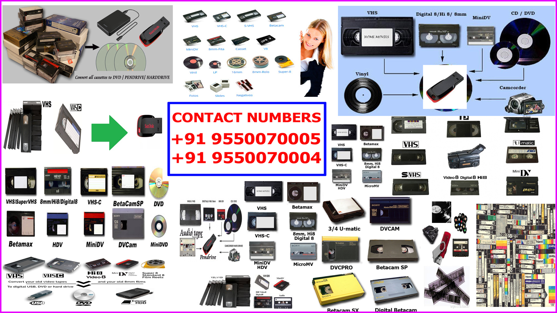 VCR VHS Cassette to DVD Conversion,HI8 VCR VHS Cassette DVD,VIDEO EDITING,AUDIO,VIDEO,DV CONVERSIONS. "VCR VHS Cassette to DVD Conversion" is a quality brand in Video and Audio Cassette Tape conversion service in South India serving at lowest possible prices in the market. Currently, we are offering Hyderabad, the best professional quality Digital Conversion of all types of Video Cassettes and Audio Cassettes at lowest prices with personalized customer support. Supported Video Cassette Formats VHS Cassette (VCR) VHS-C Cassette Hi8, Video8 Cassettes Mini DV Cassettes Audio Cassette Conversions We can also repair the damaged cassettes and restore them. Feel free to contact us. Call:9550070005,9550070004.