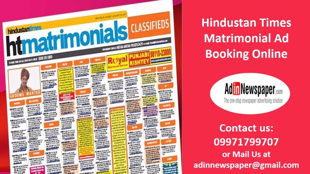 For further details regarding matrimonial ad booking for Hindustan Times Newspaper, visit web page available at https://www.adinnewspaper.com/classified-ads/hindustan-times/matrimonial