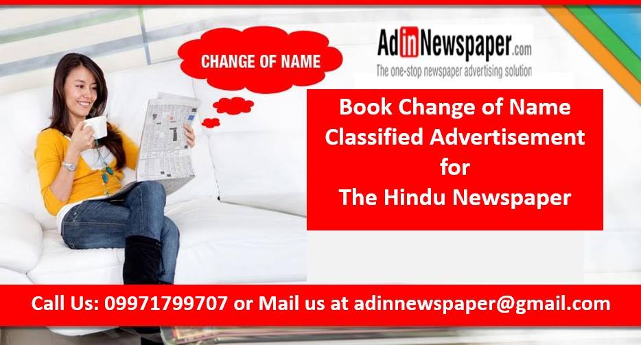 For further details regarding change of name ad booking for The Hindu Newspaper, visit web page available at https://www.adinnewspaper.com/classified-ads/hindu/change-of-name
