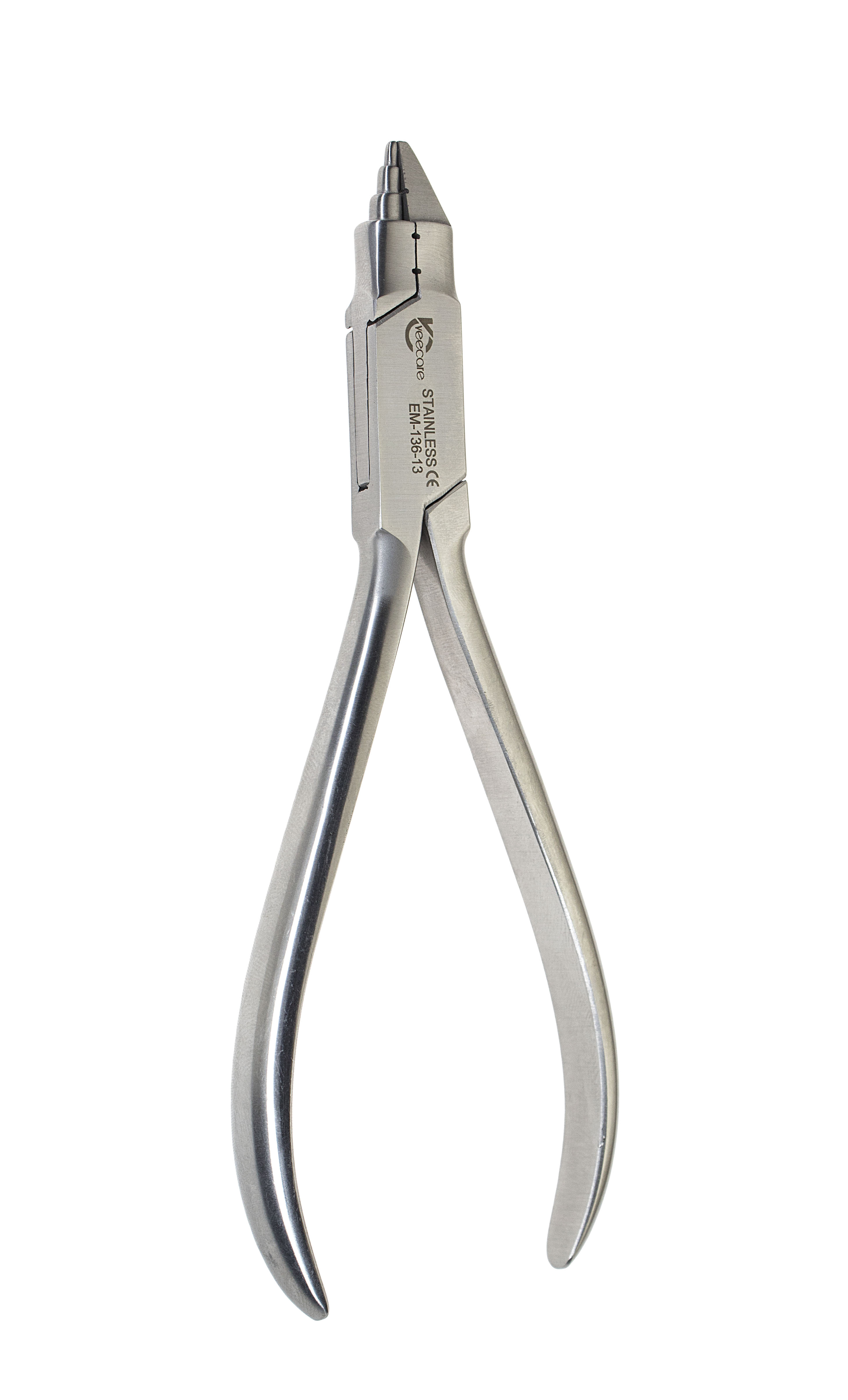 Veecare Universal Plier is for precise forming of helical loops and T loops on wires up to .022? x .025? (.56 mm x .64 mm). ,working end which are useful for placement and removal of archwires. As an extension of your hands, the serrated tips allow for better gripping and accessibility into tight spaces that are typically not possible with hands. These pliers help guide the archwire through buccal tubes and into brackets with ease.