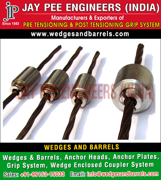 Wedges and Barrels, anchor heads, Post Tensioning Anchor Heads, grip system anchor heads, wedge coupler anchor heads, anchor plates, bearing plates, Post Tensioning anchor plates, grip system anchor plates, post tensioning grip system, post tensioning Wedge Couplers, Wedge Couplers system, grip systems, Wedge Enclosed Couplers, Wedge Couplers Grip Systems, pre stressed grip systems, Prestressing Wedges Barrels, Anchorite Wedges, Tapered Barrels, Anchor Grips Wedges, Open Grip barrels Wedges, Wire bridge barrel & wedge, Gripfast Wedges, Wedge and barrel for construction, Wedges and barrels for bridge, Railway wedges and barrels, Concrete pole wedges and barrels, Wire bridge wedges barrels, Wire rope bridge wedges barrels, Grip Fasteners, Barrels and wedges manufacturers exporters, suppliers and distributors in india, Spain, Oman, South Africa, United Arab Emirates, Israel, Bangladesh, Nepal, Colombia, Malaysia, Kuwait, Saudi Arabia, Nigeria, Namibia, Sri Lanka, Kenya, turkey, pakistan, south africa http://www.wedgesandbarrels.com 91-9915315033 [email protected]
