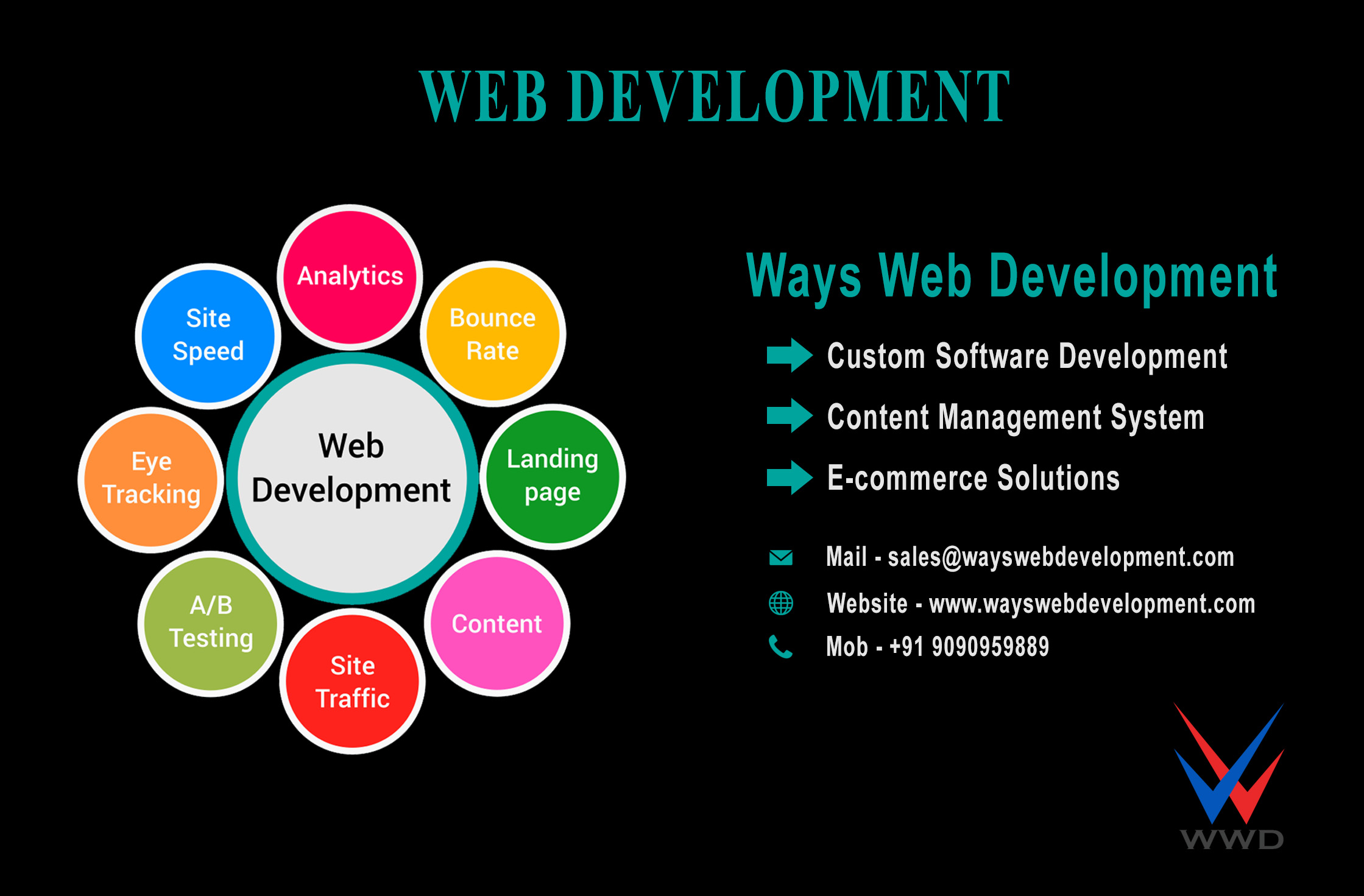 Ways Web Development is a cutting edge IT firm based in Bhubaneswar, dealing with services like e-commerce solutions and web design, web developer and app design and Digital Marketing Services. WWD is at the forefront when it comes to providing customised and niche solutions to customers all over the globe. Digital Marketing is our latest venture, where we focus on the brand building exercise. Some of our services are custom based and are prepared with high level of diligence and performance reviews with our client based on extensive and rigorous R&D works by our web developer,