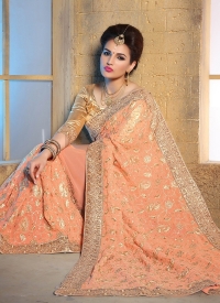 Peach Bamberg Bridal Saree