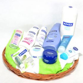 Contents: Nivea Pearl Beauty Deodorant 50 ml, Nivea Body Lotion 250 ml, Nivea Whitening Deodorant 150 ml, Nivea Smooth Milk Body 400 ml, Nivea Pure Talc 400 gm, Nivea Refreshing Face wash 75 ml, Nivea Face Cleanup 50 ml, Nivea Lip Guard 4.8 gm, Nivea Soft Cream 100 ml, Nivea Cream 100 ml.