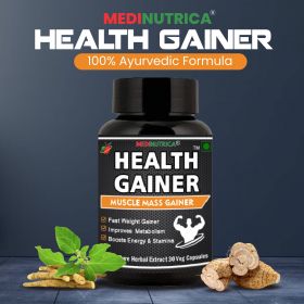 Health Gainer is an Ayurvedic formula crafted to enhance the diet which work on complete body system and promotes weight gain naturally. ,It contains Ashwagandha which is the protein of Ayurveda & special herb with multiple health benefits – boosts muscle growth & stamina, reduces body fat and improves overall body composition.