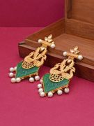 Peacock Motif Green Carved Stone Statement Earring