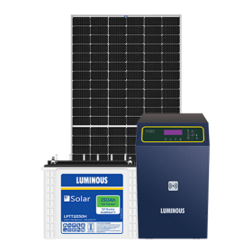 Say goodbye to frequent power cuts with off-grid MPPT-based solar systems. This system is highly efficient for areas which suffer from frequent power cuts by storing extra solar energy in the batteries. The Luminous MPPT-based solar system with a battery has excellent conversion efficiency. With the help of pure sine wave output, this solar system can provide high efficiency in running appliances.