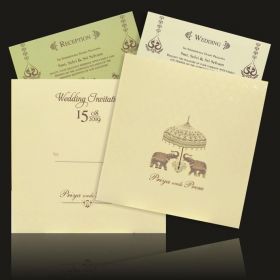 Looking for designer wedding invitation cards, then Alluring Cream Shading With Gold Foiling Wedding Card is the perfect card for you. Visit their website for buying.