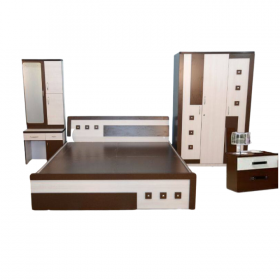 Introducing our exquisite Bedroom Set - a harmonious collection that transforms your bedroom into a luxurious retreat. Crafted with precision and attention to detail, this set includes a comfortable bed, spacious wardrobe, elegant dressing table, and coordinating bedside tables. The plush mattress and ergonomic design ensure restful sleep, while the ample storage solutions keep your belongings organized. With a timeless and sophisticated design, the Bedroom Set complements any decor, adding a touch of elegance to your space. Elevate your bedroom experience with this complete set from our furniture store, where style and comfort come together seamlessly.
