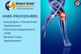 A total knee replacement is also termed as total knee arthroplasty. It helps to treat the worn-out or damaged surfaces of the knee joint by replacing it with an artificial metal or plastic prosthesis. The surgeon will make an incision on the skin over the affected area of the knee to expose the knee joint. The damaged portions of the femur bone are cut using specialized jigs. Then, the femoral component is attached to the end of the femur with or without the bone cement. The damaged area of the shinbone and the cartilage is cut to remove the deformed bone, and the implants are attached. The tibial component is secured to the edge of the bone using a screw or bone cement.