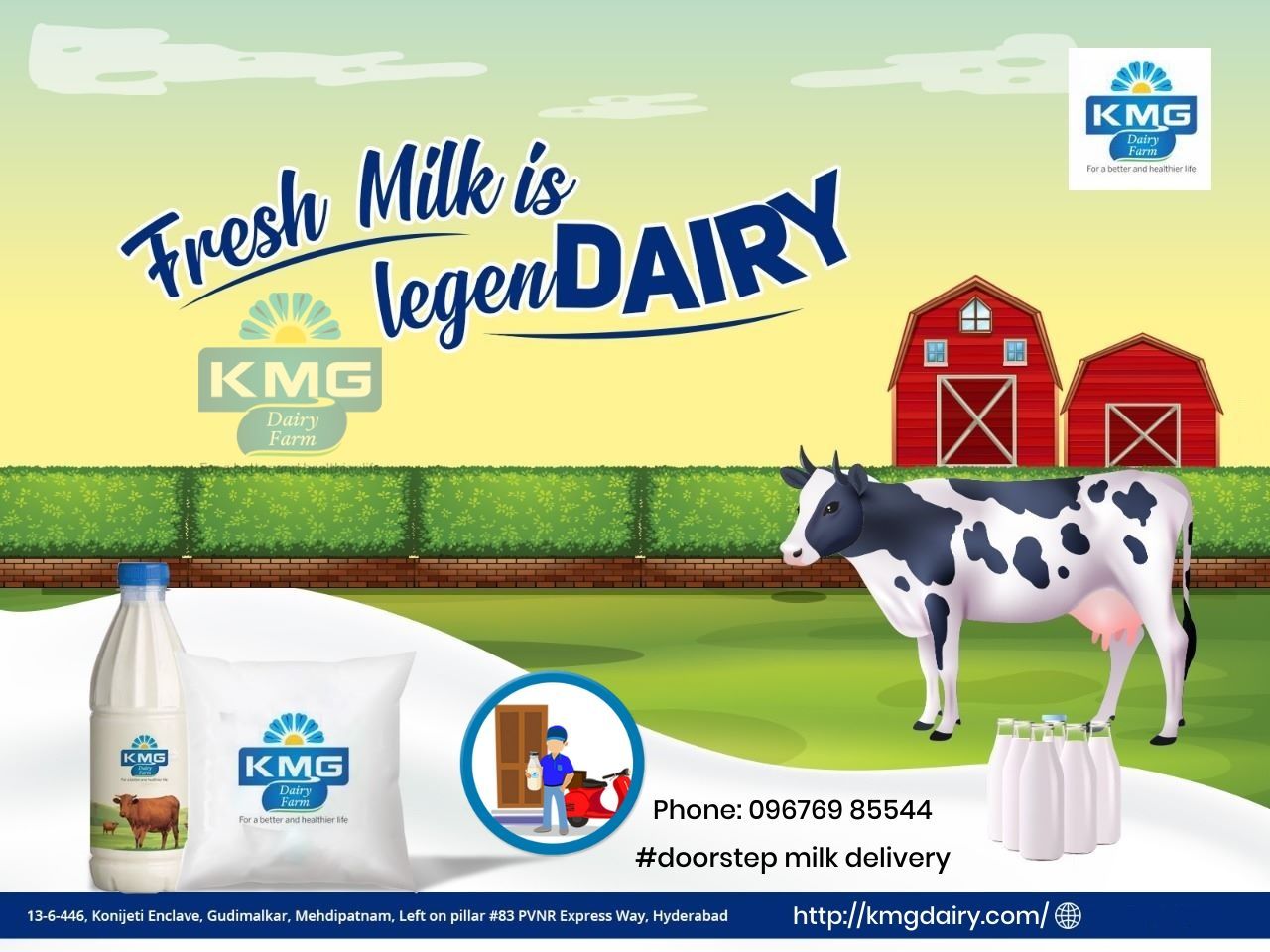 We're ready to deliver to your doorstep! We will bring our farm fresh milk and other dairy products straight to your home every day. Just make a call @ 9676985544 | 9676585544 for doorstep milk delivery in Hyderabad