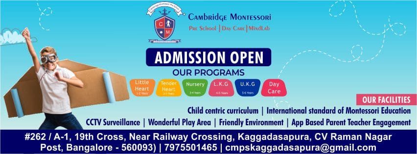 cambridge montessori pre school and day care creates a healthy and happy surroundings for growing buds to learn, explore and rise in a warm and caring environment and also help them to develop their leadership and confidence in the guidance of expert friendly teachers.