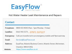 EasyFlow is qualified and certified Water Heater Repair Company providing Gledhill boilers repairs, unvented cylinder service, hot water heater repair and maintenance service with complete annual service package. Call us on 0800 433 4043!