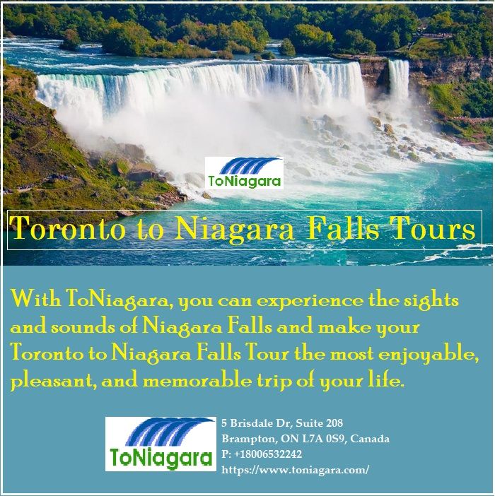 There are so many tours to choose from, travelling from Toronto? Take our Niagara Falls Tours and see all the popular attractions. Some of the must-see attractions in Niagara Falls, Canada are: • Hornblower Niagara Cruises • Journey behind the Falls • Queen Victoria Park • Botanical Gardens and Butterfly Conservatory • Niagara Whirlpool • White Water Walk • Niagara SkyWheel & other places in Clifton Hill • Adam Beck Power Plant • Skylon Tower • Niagara Daredevil Museum • Niagara Falls Illumination To know more details move on to https://www.toniagara.com/tours/niagara-falls-day-tour
